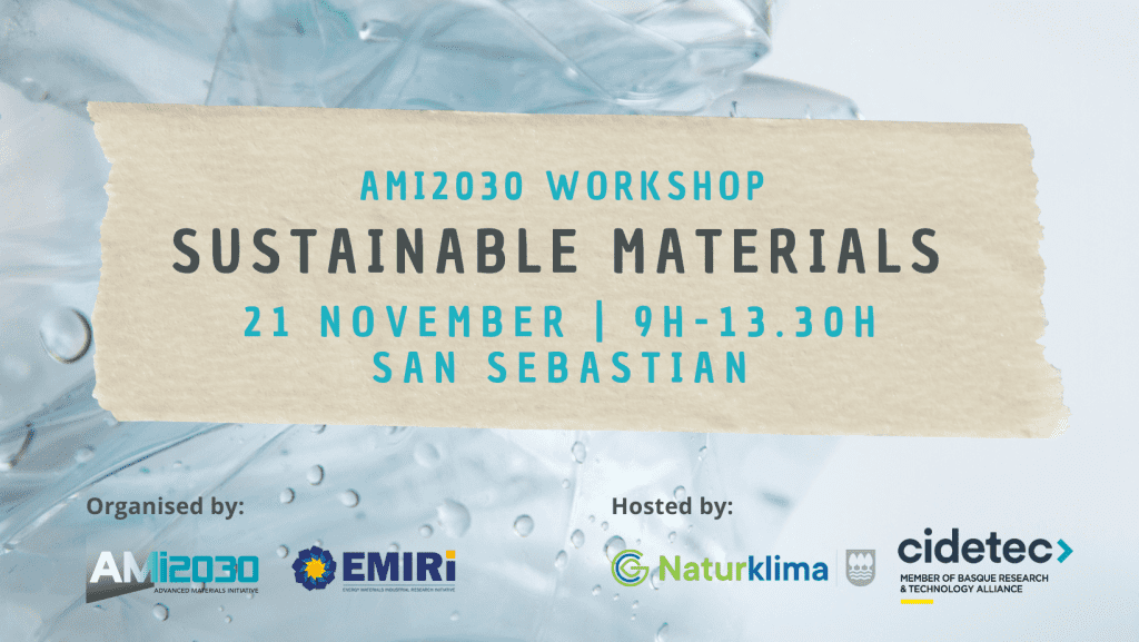 Save the date! On November 21st from 9h to 13.30h, AMI2030 & EMIRI are organising a workshop on sustainable materials in San Sebastian (Spain).